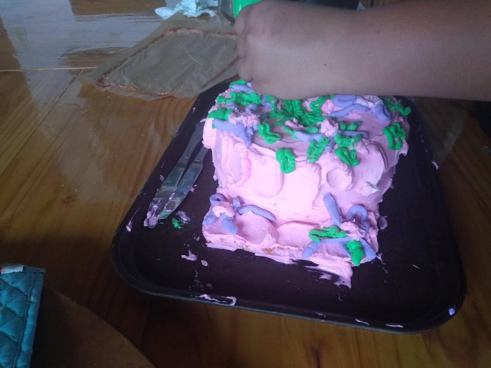 Rosie frosting the cake.